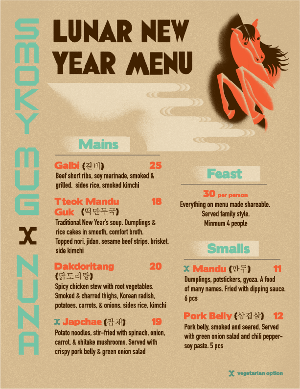 Lunar New Year Event! Reserve for Brunch Tuesday Feast MenuFebruary 17th, 2026Reservations taken, but walk-ins also welcome! Reserve a seat now